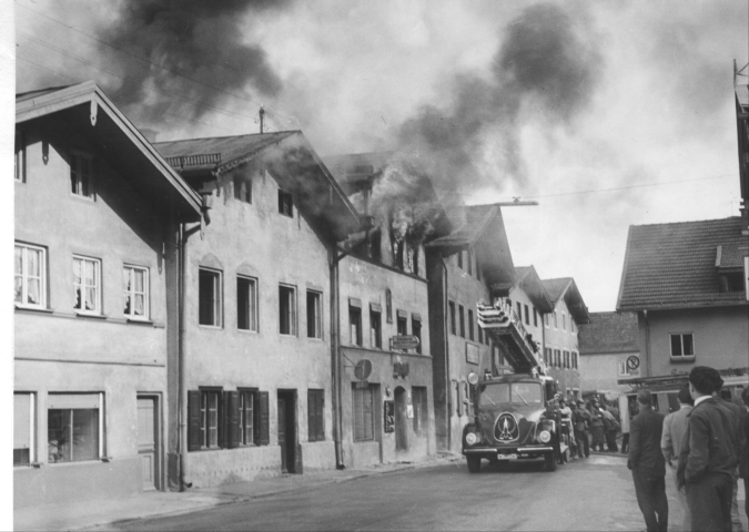 lm Rahmen der Feuerschutzwoche vom 22. - 28. Oktober 1961, die unter dem Motto "Brandverhütung" stand, wurde innerhalb einer Schauübung bei der oberen Loisachbrücke an realistischen Beispielen demonstriert, wie durch menschliche Fahrlässigkeit und Leichtsinn Brände verursacht werden. Bei einer abschließenden großen